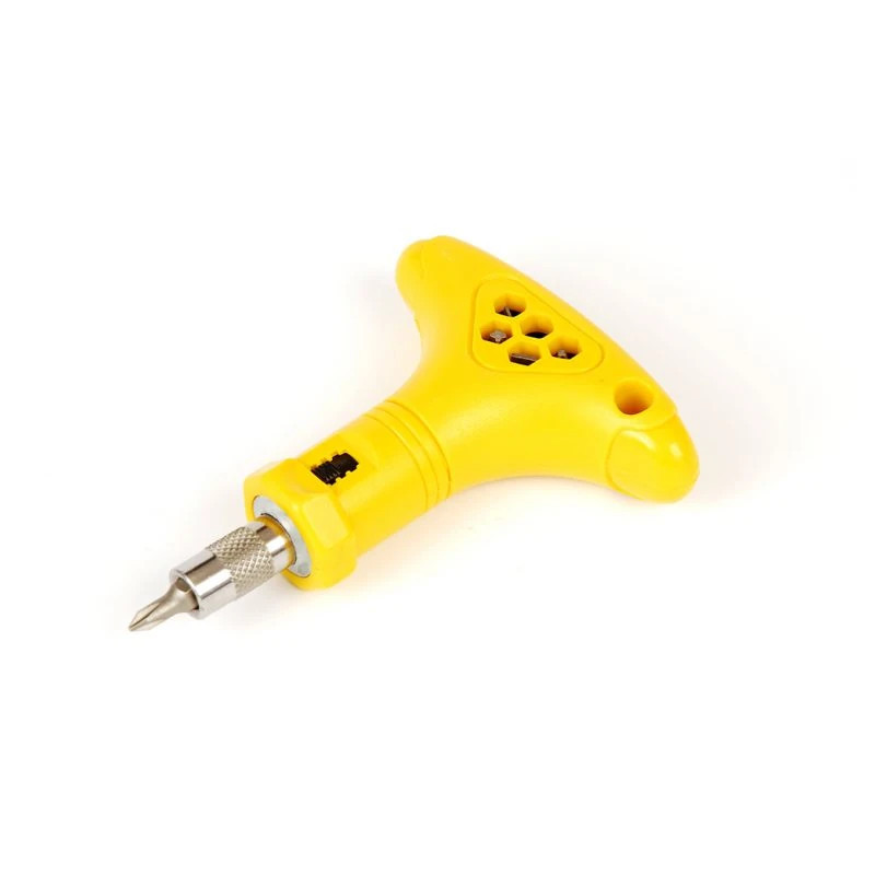 Není snadné se naučit utahování šroubů, zejména pro děti. Se šroubovákem ToolKid má dítě lepší úchop a snáze provádí rotační pohyb. 6 šroubovacích bitů v různých velikostech (ploché i křížové bity) je uloženo uvnitř rukojeti pomocí upínacího mechanismu. Výměna bitu může být provedena pouze zatlačením použitého bitu proti bitu, který chcete použít, aby se vysunul z rukojeti a mohl být umístěn do držáku bitů. Tímto způsobem se bity neztratí. Otočení šroubu dovnitř nebo ven ze dřeva lze provést buď pomocí pevné polohy, nebo polohy ráčny.