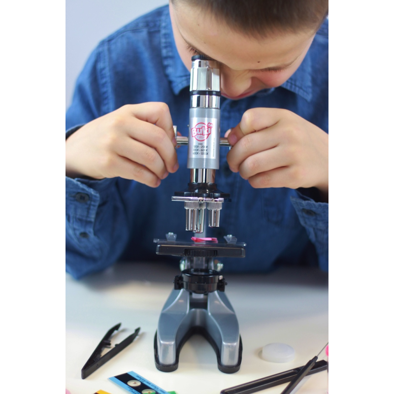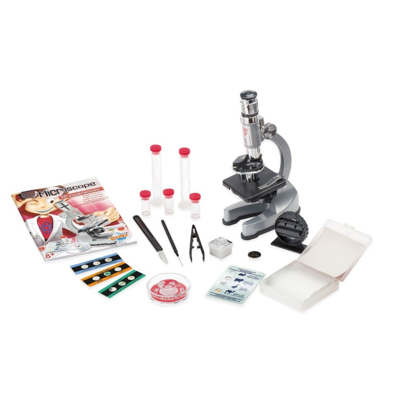 Sada je bohatě vybavená, obsahuje vše potřebné pro uskutečnění 30 podrobně popsaných experimentů. Mikroskop nabízí trojí zvětšení - 200x, 600x a 1200x, což umožňuje podrobné pozorování nejen předpřipravených preparátů, ale i vašich vlastních objevů na volných podložních sklíčkách. Kromě preparátů sada zahrnuje i Petriho misku, mikro kráječ, pinzetu a další nástroje, které jsou nezbytné pro biologické a jiné experimenty. Děti se mohou těšit na zkoumání detailních struktur hmyzu, listů, květů rostlin, drobných nerostů a mnoha dalších vzrušujících objektů.