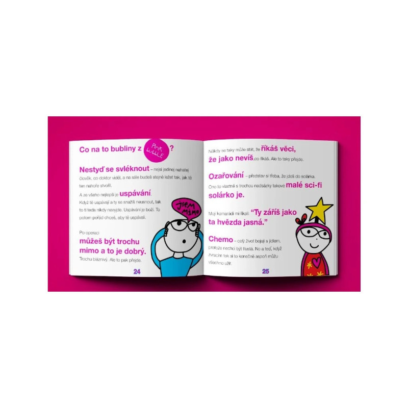 🏥 Otevřená a laskavě humorná příručka, která pomáhá dětem i dospělým překonat pobyt v nemocnici. Vznikla díky zkušenostem dětských pacientů a mladých dospělých z nadačního fondu Pink Bubble a sdružení ONKA.