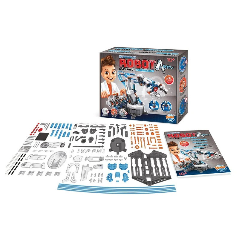 Tato robotická ruka je unikátní svou konstrukcí a možnostmi, skládá se z 120 dílů a nabízí skvělou příležitost pro rozvoj manuálních dovedností a trpělivosti. S touto stavebnicí děti nejenže sestaví svou vlastní hračku, ale také pochopí základní fyzikální zákony v praxi. Rameno robotické ruky se pohybuje díky síle hydraulických pístů, což umožňuje jeho otáčení, zvedání, rotaci a úchop předmětů do hmotnosti 50g pomocí klepeta nebo přísavky.