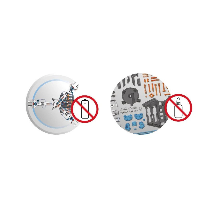 Stavebnice nepotřebuje baterie, což znamená nekonečnou zábavu bez starostí o napájení. Ideální pro děti od 8 let.