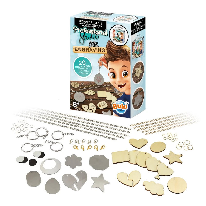 Náhradní materiál pro sadu BUKI Profesionální gravírovací studio. Sada obsahuje bohaté příslušenství a nový materiál pro další kreativní tvorbu. Přesný obsah je zobrazen na obrázku.