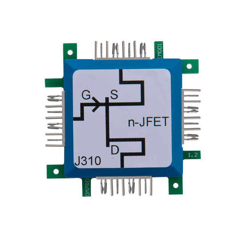Tranzistor JFET (junction field effect tranzistor) je vodivý bez přivedení napětí na kontakt hradla mezi kontaktem source a drain. Chová se jako ohmický rezistor, dokud není dosaženo vypínacího napětí. U zde použitého tranzistoru je to přibližně 2,5 V. Při dosažení tohoto napětí zůstává proud mezi drainem a zdrojem konstantní. Napětí na kontaktu hradla, které je záporné vzhledem ke zdroji, snižuje vypínací napětí. To umožňuje variabilní nastavení omezení průtoku proudu.