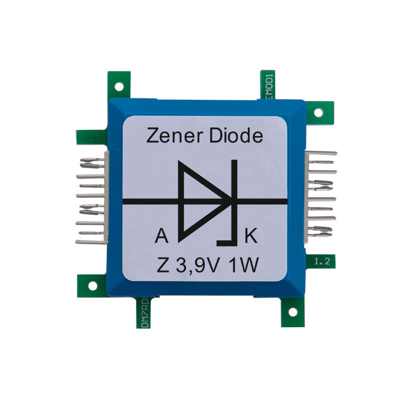 Tato kostka obsahuje Zenerovu diodu. Její zvláštní vlastností je stabilizace napětí. Stabilizace napětí probíhá na této součástce v opačném směru. Pokud je napětí dostatečně vysoké, aby umožnilo průchod proudu proti přímému směru, označuje se jako přesně definované průrazné napětí. To je specifikováno u každé součástky a u této kostky činí 3,9 V.