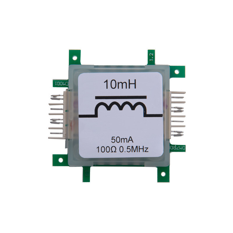 Tato kostka obsahuje cívku s indukčností 10mH. Indukčního napětí 1 V je dosaženo po 10 ms, pokud je změna průtoku proudu 1A. Cívky lze použít k sestavení rezonančních obvodů a frekvenčních filtrů. Protože cívky působí proti jakékoli změně průtoku proudu, stabilizují obvod. Tuto vlastnost stabilizace proudu lze využít k transformaci napětí.