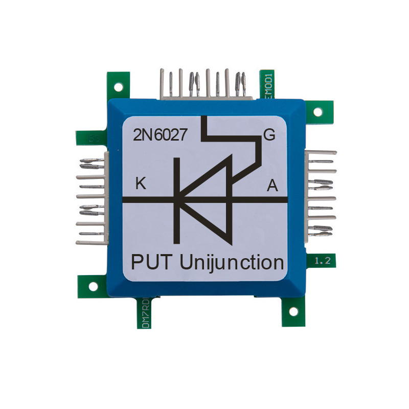 Tato kostka obsahuje programovatelný tranzistor PUT (programovatelný unijunction tranzistor). Zvláštností této součástky je prahové napětí mezi anodou a katodou, které lze nastavit pomocí kontaktu hradla. Pokud je přivedeno napětí v přímém směru, je odpor mezi anodou a katodou velmi vysoký, dokud není dosaženo prahového napětí. Pokud je nyní na hradlo přivedeno kladné napětí ke katodě, může se prahové napětí snížit, což způsobí, že se PUT stane předčasně nízkoodporovým. Obvody oscilátorů lze snadno konstruovat pomocí PUT.