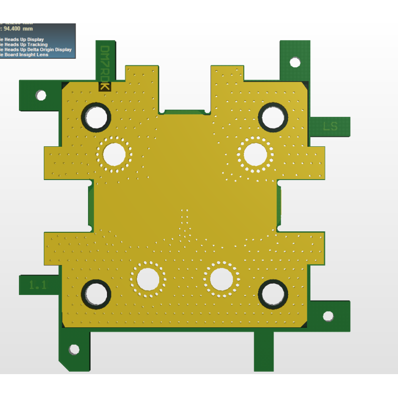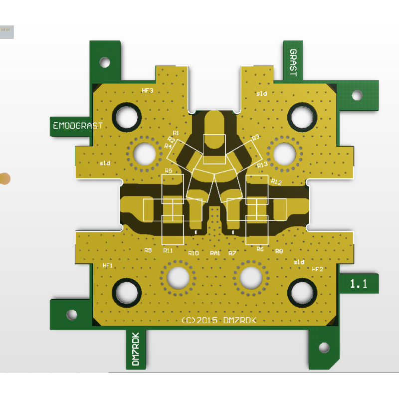 Konstrukce rozbočovačů, slučovačů, filtrů, tlumičů nebo jako pasivní spojovací prvek. Vycpávky pro atenuátory Anren nebo diskrétní atenuátory. Přípojky lze osadit systémem Rosenberger P-SMP. Dráhy jsou aproximovány na 50 ohmů jako mikropáskové. Materiál desky FR4 (lze použít do cca 2,5 GHz), tloušťka 1,55 mm. Doporučené součástky 0805 SMD. Přemostění pomocí rezistorů SMD 0805 0R. Pro průchozí vodiče se doporučují polotuhé koaxiální kabely.