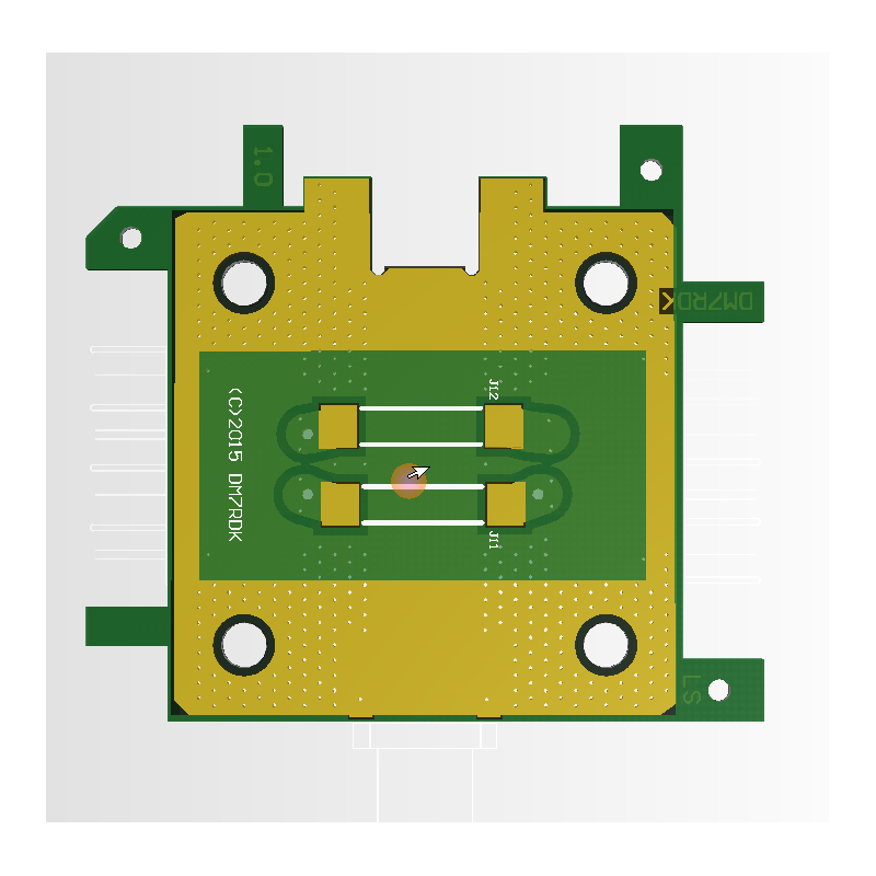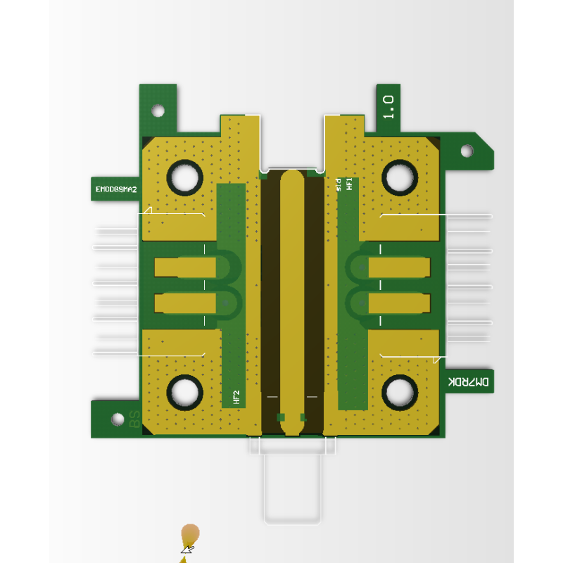 Připojovací deska pro integraci horizontální zásuvky SMA do systému brick. Tím se vytvoří připojení SMA k P-SMP (GHz). Volitelně lze mezi SMA a P-SMP použít vazební kondenzátor pro stejnosměrné oddělení. Volitelně lze signály ze systému brick vést přes desku s 90° posunem vůči cestě VF signálu. To také umožňuje integrovat zásuvky SMA do čelního panelu. Materiál FR4.