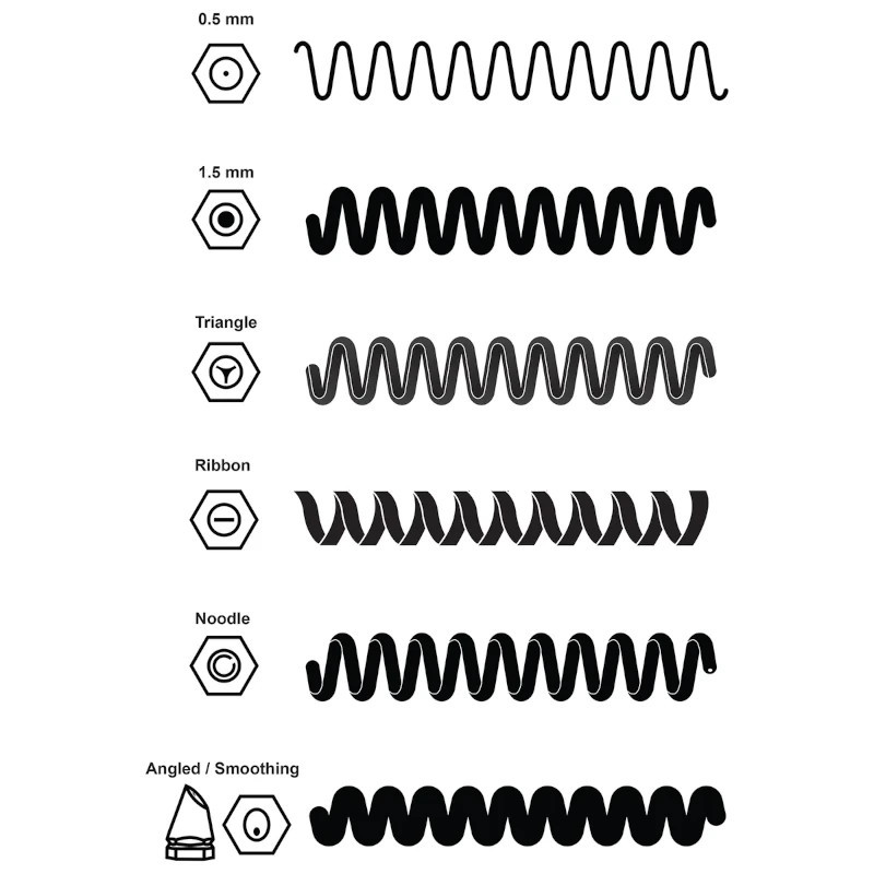 Obohaťte svůj kreativní arzenál s inovativní sadou šesti unikátních špiček pro vaše 3D pero Create+ a Pro+. Každá špička v této sadě představuje bránu k nové dimenzi designu: od ultra jemné 0,5 mm špičky pro detailní práci až po robustnější 1,5 mm špičku pro větší objekty. Nechte se inspirovat špičkami ve tvaru trojúhelníku, stuhy, nudle a zkosenou tryskou, která slouží i jako nástroj pro dokonalé vyhlazení vašich 3D výtvorů.
